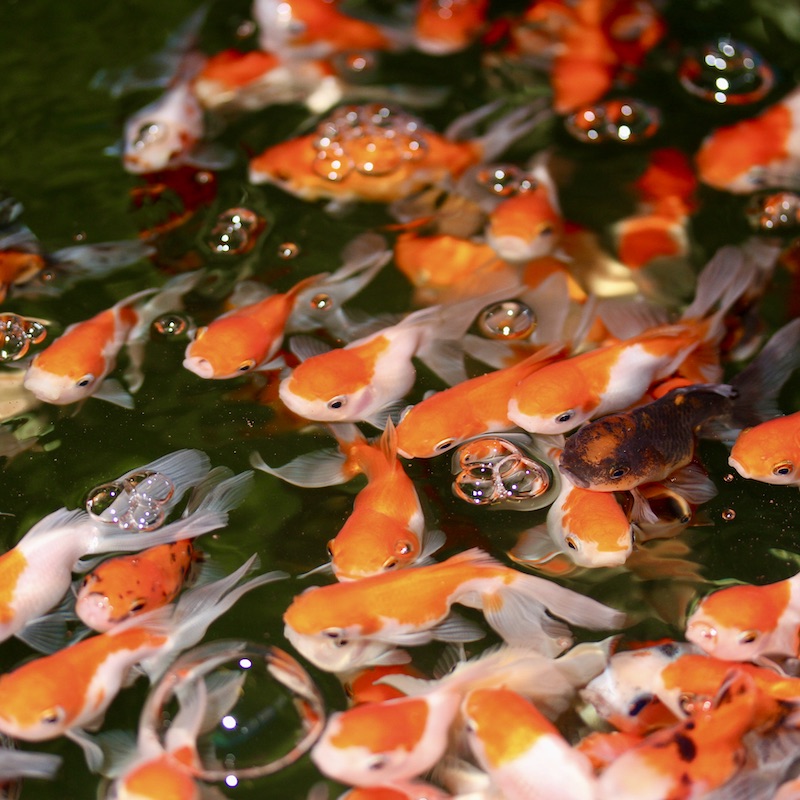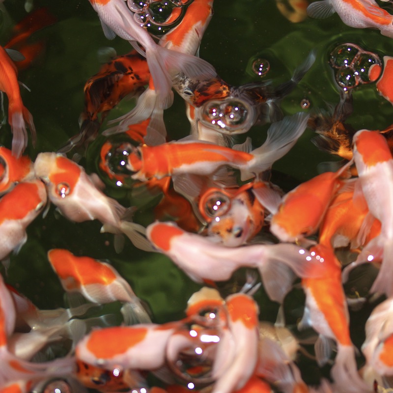 Slöjstjärten är en odlingsform av guldfisken. Färger och former och fenor är framavlade.