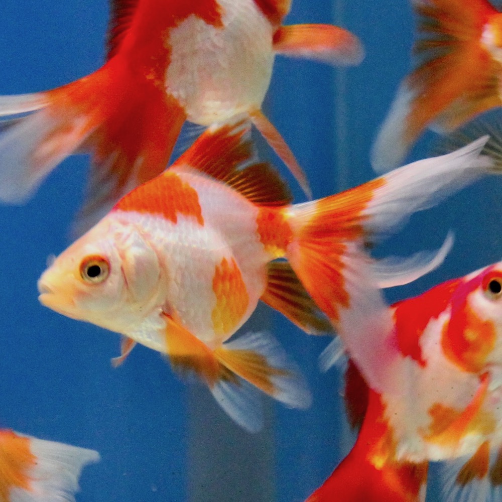Slöjstjärten är en odlingsform av guldfisken. Färger och former och fenor är framavlade.